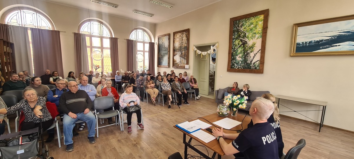 Policjanci przekazali seniorom niezbędna wiedzę, mającą na celu zwiększenie bezpieczeństwa osób starszych oraz uświadomienie, jak nie stać się ofiarą przestępstw metodą „na wnuczka, policjanta CBŚ” czy „na administratora”. Zwrócili uwagę na to, że podawanie się za krewnych, funkcjonariuszy Policji czy pracowników różnych instytucji oraz firm usługowych to najczęściej stosowana metoda przez oszustów, których ofiarami padają z reguły osoby starsze lub samotnie mieszkające. Goście zwrócili również uwagę na bezpieczeństwo seniorów w ruchu drogowym oraz wyjaśnili, jak nie paść ofiarą złodziei kieszonkowych, podczas przejazdu środkami komunikacji miejskiej. Przypomniano również o możliwości korzystania z narzędzia jakim jest Krajowa Mapa Zagrożeń Bezpieczeństwa oraz aplikacja Moja Komenda. Dodatkowo podczas miłej i przyjaznej wymiany zdań, funkcjonariusze odpowiadali na pytania gospodarzy związane z tematyką spotkania, jak również innymi problemami, jakie nurtują ludzi starszych a mają bezpośredni wpływ na ich bezpieczeństwo. Ponadto uczestnicy spotkania chętnie dzielili się z swoimi doświadczeniami życiowymi, niejednokrotnie przykrymi dla nich, ale pozwalającymi im na wyciągnięcie konstruktywnych wniosków na przyszłość. Spotkanie to przebiegło w miłej atmosferze oraz pozostawiło w świadomości seniorów wiedzę dotyczącą podstawowych zasad bezpieczeństwa.