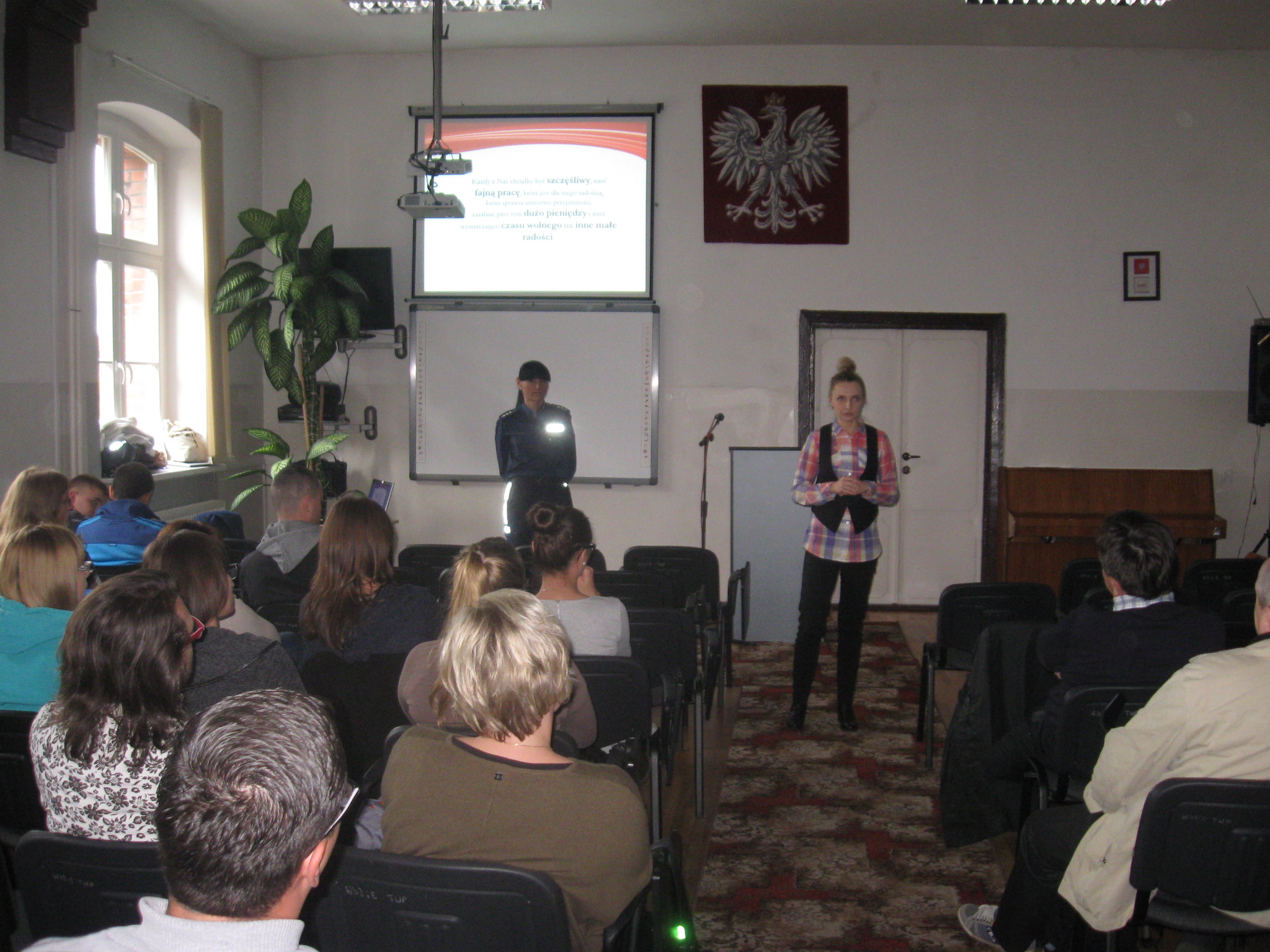 W ramach Ogólnopolskiego Tygodnia Kariery na Warmii i Mazurach kętrzyńscy policjanci wspólnie z pracownikami Urzędu Pracy i Ochotniczego Hufca Pracy spotkali się ze studentami Wyższej Szkoły Informatyki i Ekonomii Towarzystwa Wiedzy Powszechnej. Handel ludźmi to jeden z głównych problemów współczesnego świata. Coraz więcej ludzi, ze względu na szybki i łatwy zarobek, decyduje się na podjęcie pracy za granicą. Często nieświadomi zagrożenia, podejmują lekkomyślne, spontaniczne decyzje zapominając o ostrożności. Podczas spotkania wyświetlane były m.in. filmy edukacyjno – informacyjne przygotowane przez Ministerstwo Spraw Wewnętrznych. Ich bohaterowie to przede wszystkim osoby, które zmuszane były do niewolniczej pracy. Opowiadając swoją tragiczną historię przestrzegają innych przed nieuczciwymi pracodawcami i przed wyjazdami za granicę bez odpowiedniego przygotowania. Obejrzane filmy komentowali funkcjonariusze przedstawiając młodzieży zasady, o których należy pamiętać planując podjęcie pracy za granicą. Mówili na co zwracać uwagę jak ustrzec się oraz gdzie szukać pomocy w sytuacjach wskazujących na to, że mamy do czynienia z tego rodzaju przestępstwem.