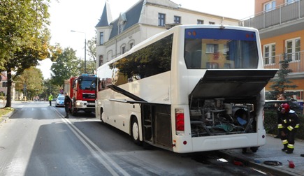 W piątek (07.09.2018) około godziny 12:30 oficer dyżurny kętrzyńskiej jednostki Policji został telefonicznie poinformowany o tym, że na skrzyżowaniu ulic Daszyńskiego z Mazurską pali się autobus. Policjanci, którzy pojechali na miejsce zastali obsługujących pożar strażaków, a także 24 pasażerów i kierowcę, którzy bezpiecznie opuścili pojazd. Podróżnym na szczęście nic się nie stało. Kierowca był trzeźwy. Jak powiedział, w trakcie jazdy zauważył, że spod komory silnika wydobywa się dym. Natychmiast powiadomił odpowiednie służby. Jak ustalili funkcjonariusze straży pożarnej, do zadymienia doszło z powodu samoistnego zapłonu filtra powietrza. Jak się okazało był to autobus wycieczkowy wiozący grupę Rosjan do Mikołajek. Po turystów po kilku godzinach przyjechał nowy pojazd.