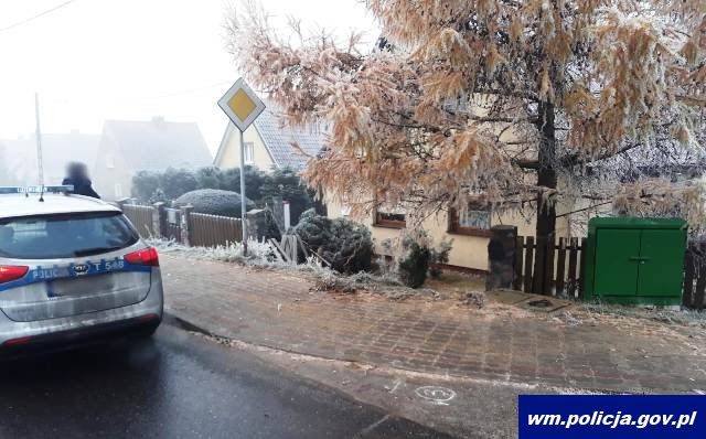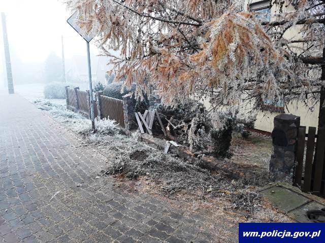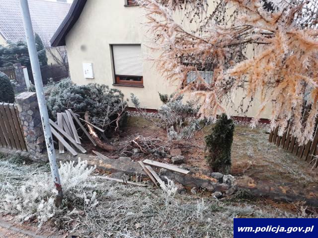 Kętrzyn: Wymusił pierwszeństwo, stracił kontrolę i wjechał w ogrodzenie prywatnej posesji