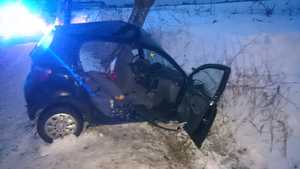 Wczoraj (12.01.2009r.) o godzinie 14:30 oficer dyżurny otrzymał zgłoszenie, że na trasie Winda-Jankowice gm. Srokowo doszło do wypadku drogowego. Na miejsce natychmiast pojechali policjanci. Ze wstępnych ustaleń funkcjonariuszy wynika, że 39-letnia kobieta , kierująca samochodem osobowym marki Toyota Yaris na łuku drogi nie dostosowała prędkości do panujących warunków drogowych. Kobieta straciła panowanie nad autem zjechała na pobocze i uderzyła w przydrożne drzewo. 39-latka z obrażeniami ciała została przewieziona do szpitala.