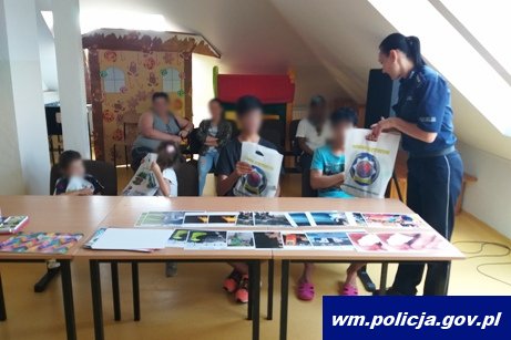 W poniedziałek (29.07.2019) policjantki z kętrzyńskiej komendy rozmawiały z pracownikami i podopiecznymi Strzeżonego Ośrodka dla Cudzoziemców. Spotkanie było świetną okazją, aby poprzez zabawę uczyć najmłodszych bezpiecznego zachowania w okresie wakacyjnym oraz sytuacjach, które mogą mieć ogromne znaczenie dla zachowania ich życia i zdrowia. Zaprezentowano sprzęt, który jest wykorzystywany w codziennej służbie. Podopieczni dzielili się swoimi spostrzeżeniami i zadawali pytania dotyczące specyfiki pracy policjanta. Jak zawsze największą atrakcją najmłodszych był radiowóz policyjny, do którego wsiadali jak prawdziwi policjanci i testowali urządzenia wykorzystywane w codziennej służbie.