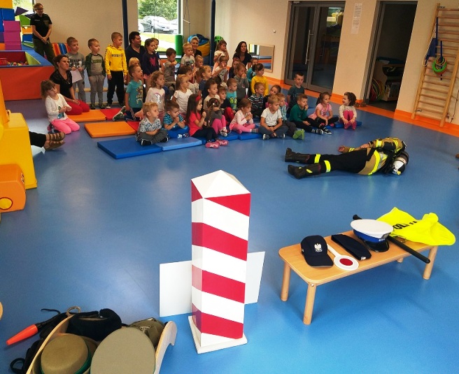 W pierwszej części spotkania zostały zaprezentowane stroje, w których policjanci pracują na co dzień. St. sierż. Anna Baluta przybliżyła dzieciom na czym polega praca policjanta, po czym skupiła się na zagadnieniu bezpieczeństwa dzieci. Najmłodsi z zainteresowaniem słuchali o tym, jak zachowywać się na drodze i w jej okolicy. W kolejnej części zajęć przedszkolaki poznały specyfikę służby funkcjonariuszy straży granicznej. Miały możliwość obejrzenia a nawet ubrania się w kamizelki kuloodporne, kaski i kajdanki. W trzeciej części spotkania strażacy nie tylko zaznajomili przedszkolaków z pracą strażaka, ale zademonstrowali tok postępowania podczas udzielania pierwszej pomocy w nagłych wypadkach.