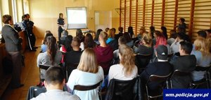 Kętrzyn: Policjanci odwiedzają szkoły, przekazują wiedzę na temat odpowiedzialnego zachowania